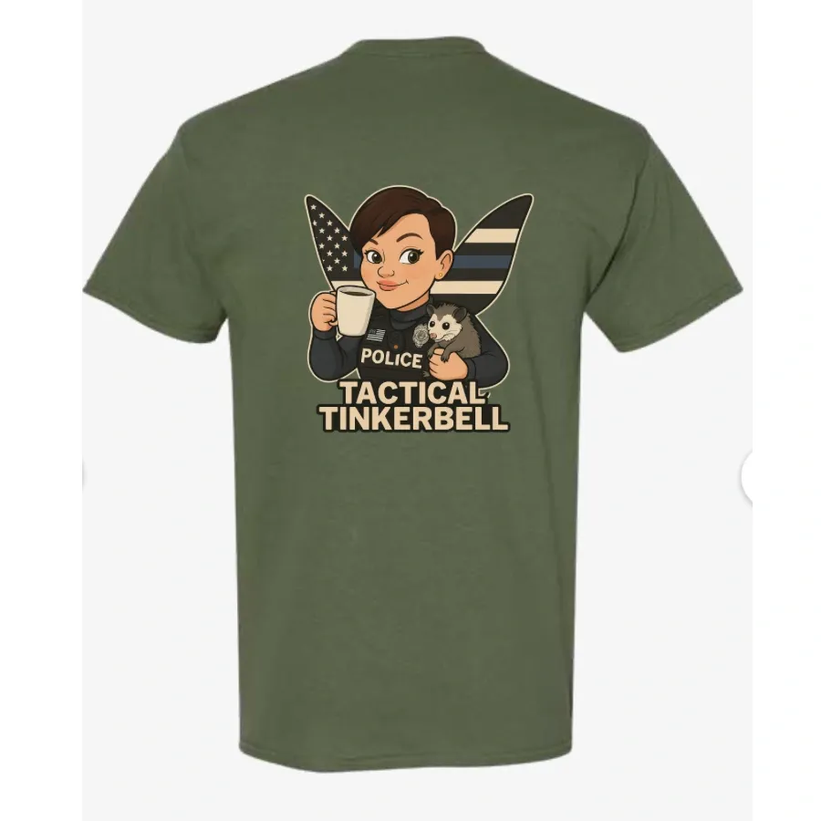 TACTICAL TINKERBELL TSHIRT (TINK W/ COFFE & POSSUM ON FRONT)